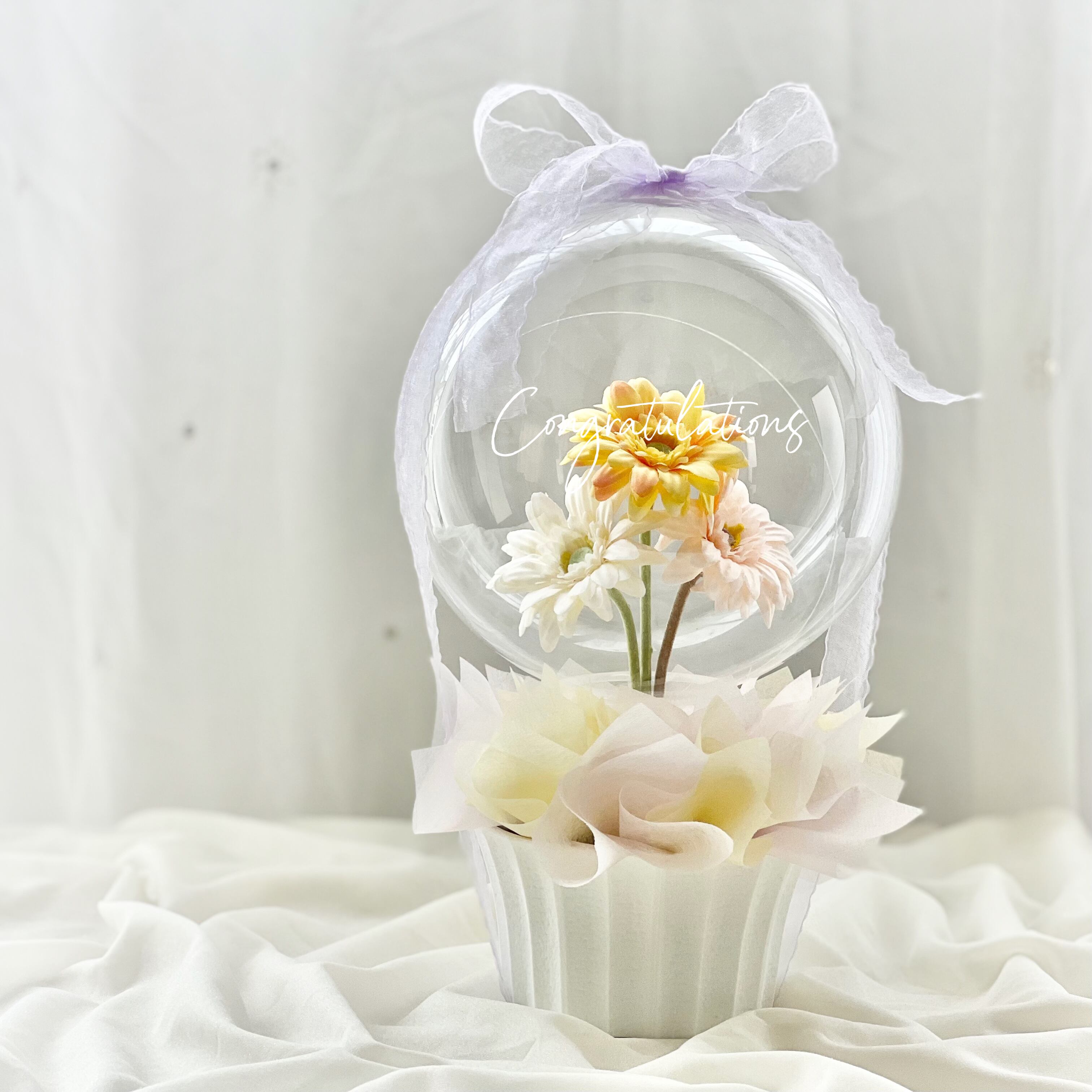 クリアバルーンの中に淡い色のガーベラ入り♡
