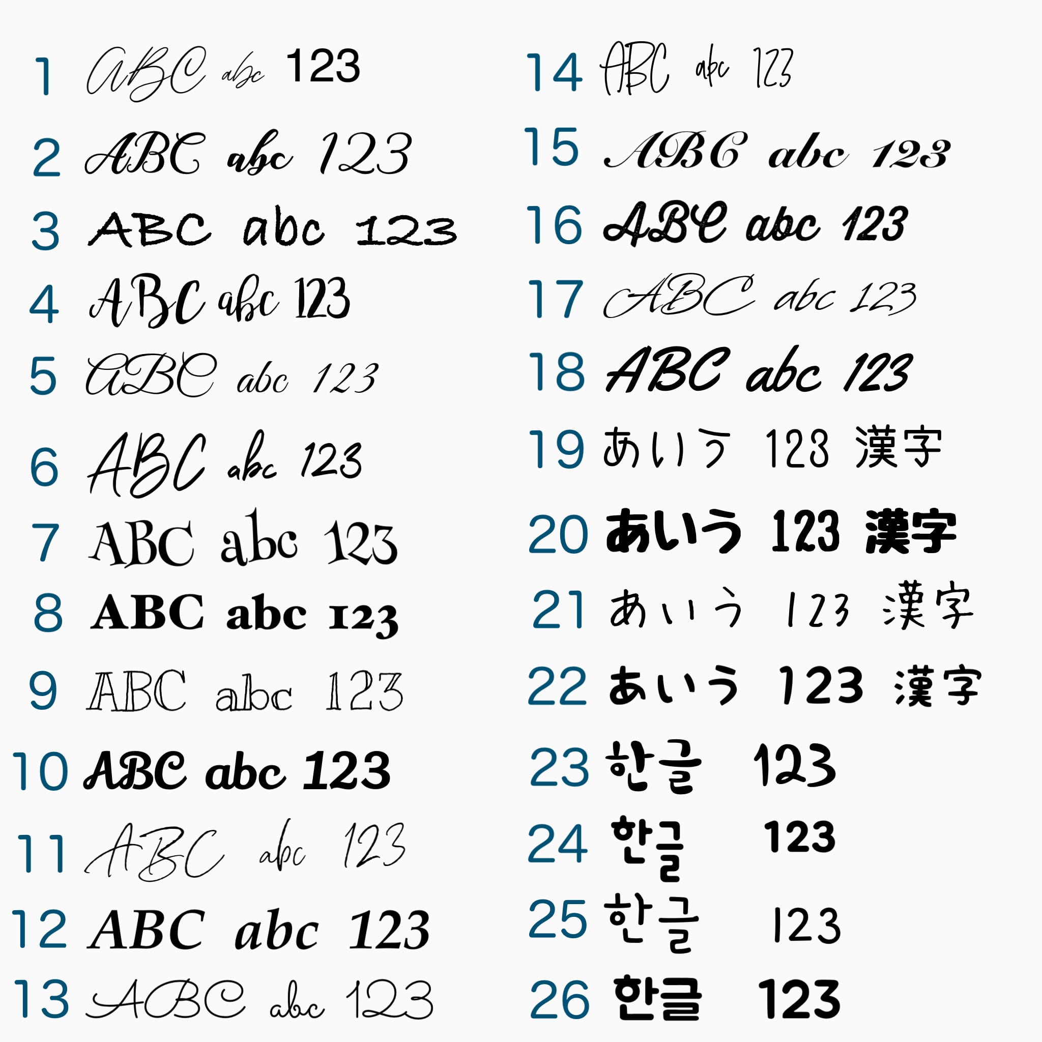 文字フォント(フォント見本より)